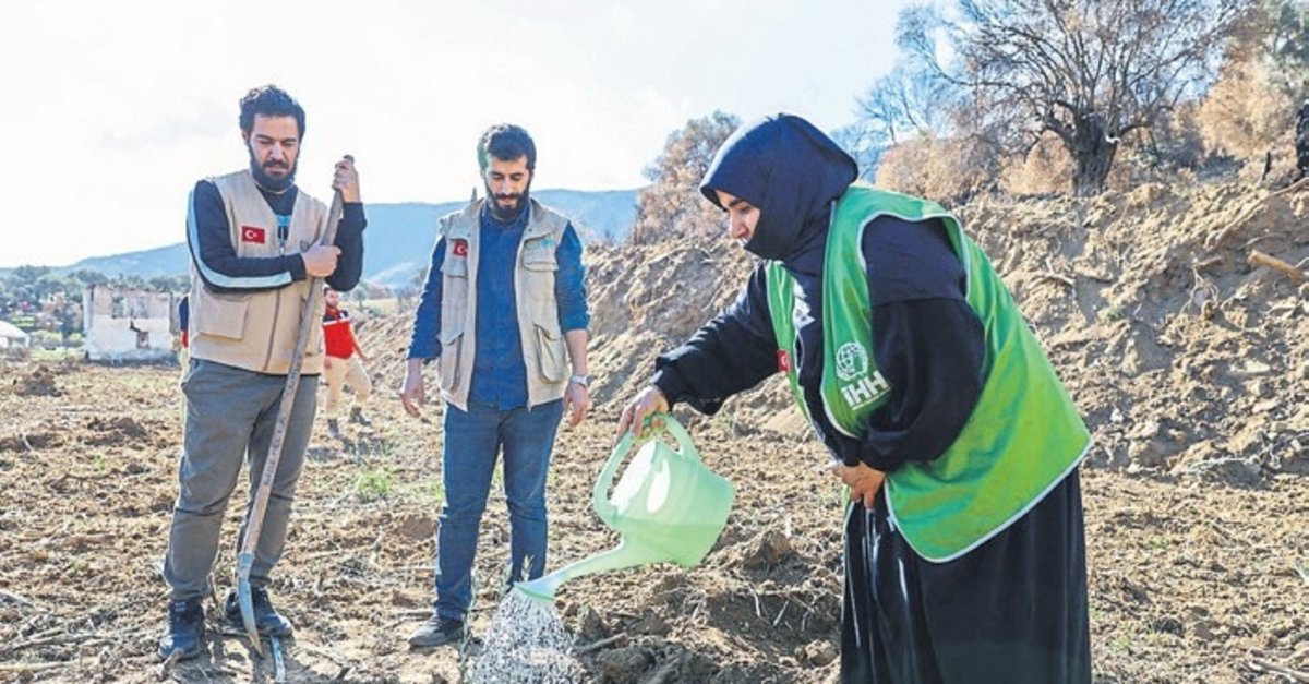 İNSAN Hak ve Hürriyetleri (İHH) İnsani Yardım Vakfı, bu yıl orman yangınlarının yaşandığı İzmir, Aydın ve Denizli'deki çiftçiler için başlattığı zeytin fidanı desteğini "11 Kasım Milli Ağaçlandırma Günü"nde 25 bine çıkarmayı hedefliyor. Orman yangınlarından etkilenen çiftçileri desteklemek amacıyla anlamlı bir proje başlatan İHH, çiftçilere zeytin fidanı dağıttı. Projenin ilk etabında İzmir'de 3 bin 500 zeytin fidanı çiftçilerin arazileriyle buluşturuldu.
