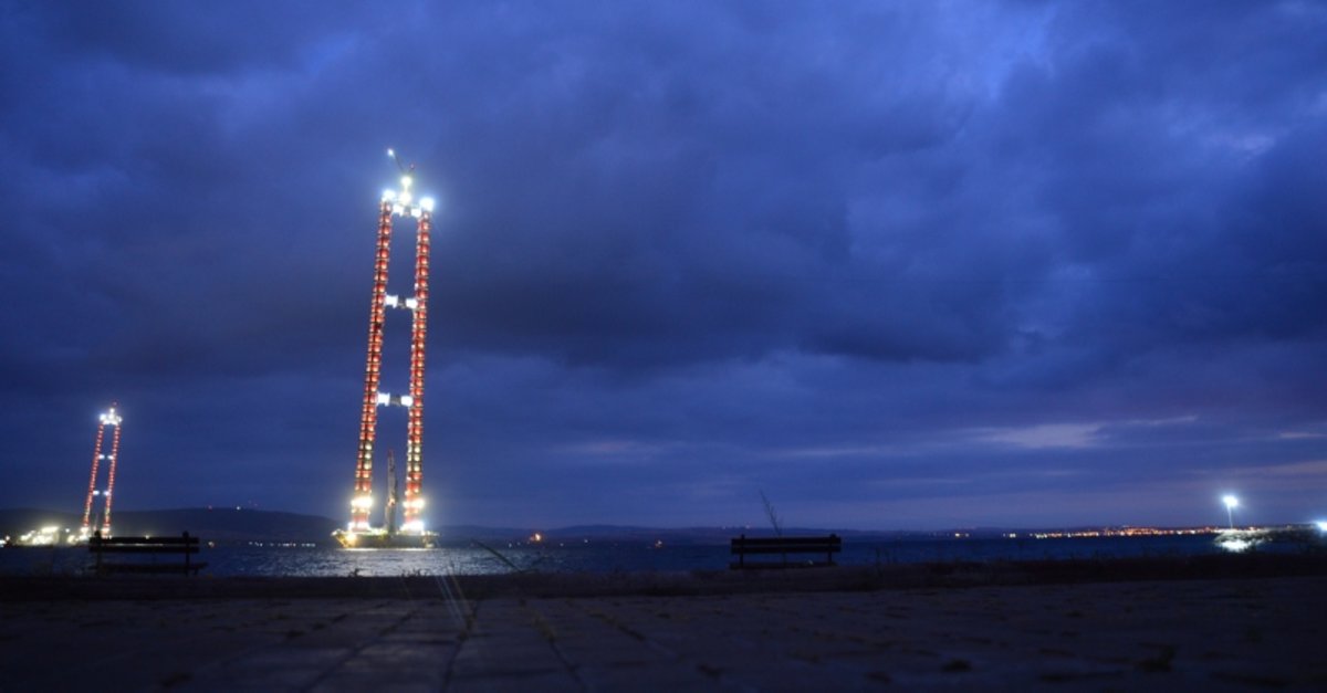 "Çanakkale Boğazı'nın gerdanlığı" olarak nitelendirilen köprüde, her iki yakada suyun içindeki blokların üst üste yerleştirilmesiyle hazırlanan ve Türk bayrağını simgeleyen kırmızı beyaz renklere sahip ayakların tamamlanmasıyla diğer çalışmalara ağırlık verildi.