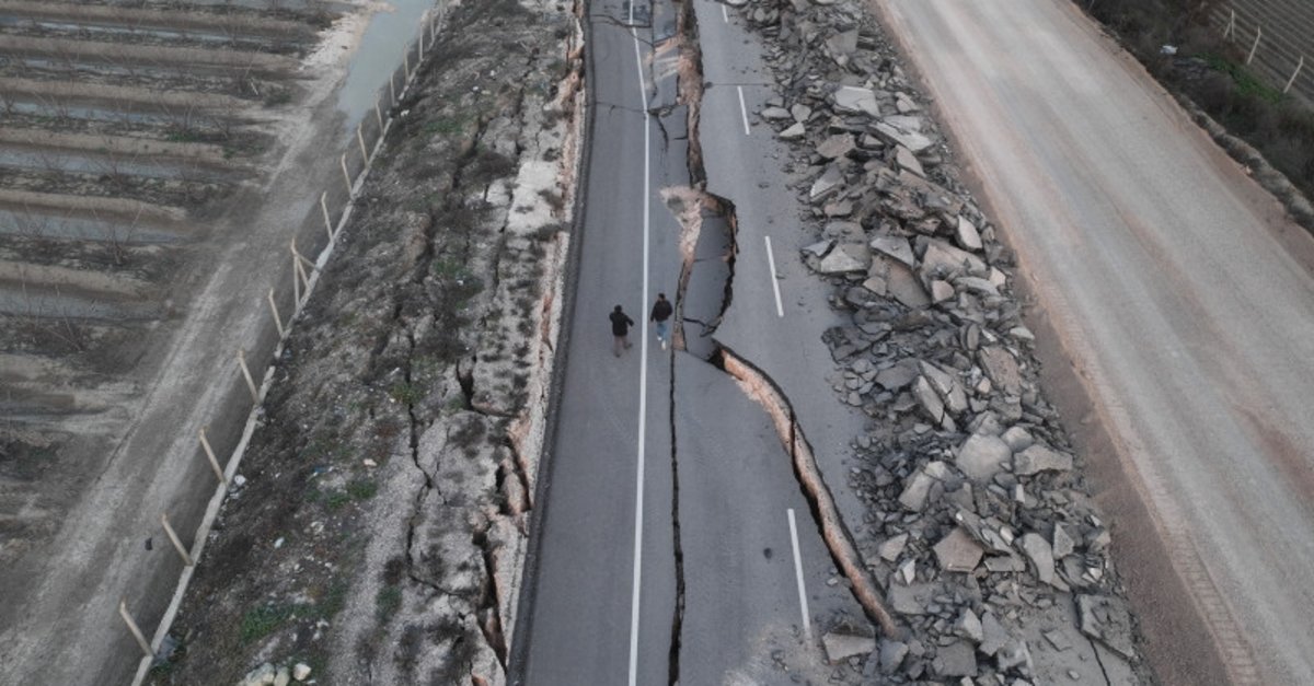 HaberlerGaleri Yarılan yol havadan görüntülendi! Depremin boyutunu gözler önüne serdi