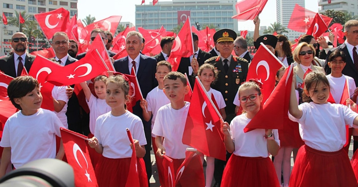 İzmir Valiliği tarafından gerçekleştirilen 23 Nisan Ulusal Egemenlik ve Çocuk Bayramı kutlamaları, Cumhuriyet Meydanı'nda gerçekleşti. Atatürk Anıtı'na İl Milli Eğitim Müdürlüğü çelenginin sunulmasıyla tören başladı. Saygı duruşu ve İstiklal Marşı'nın okunmasının ardından bayraklar öğrenciler tarafından göndere çekildi.