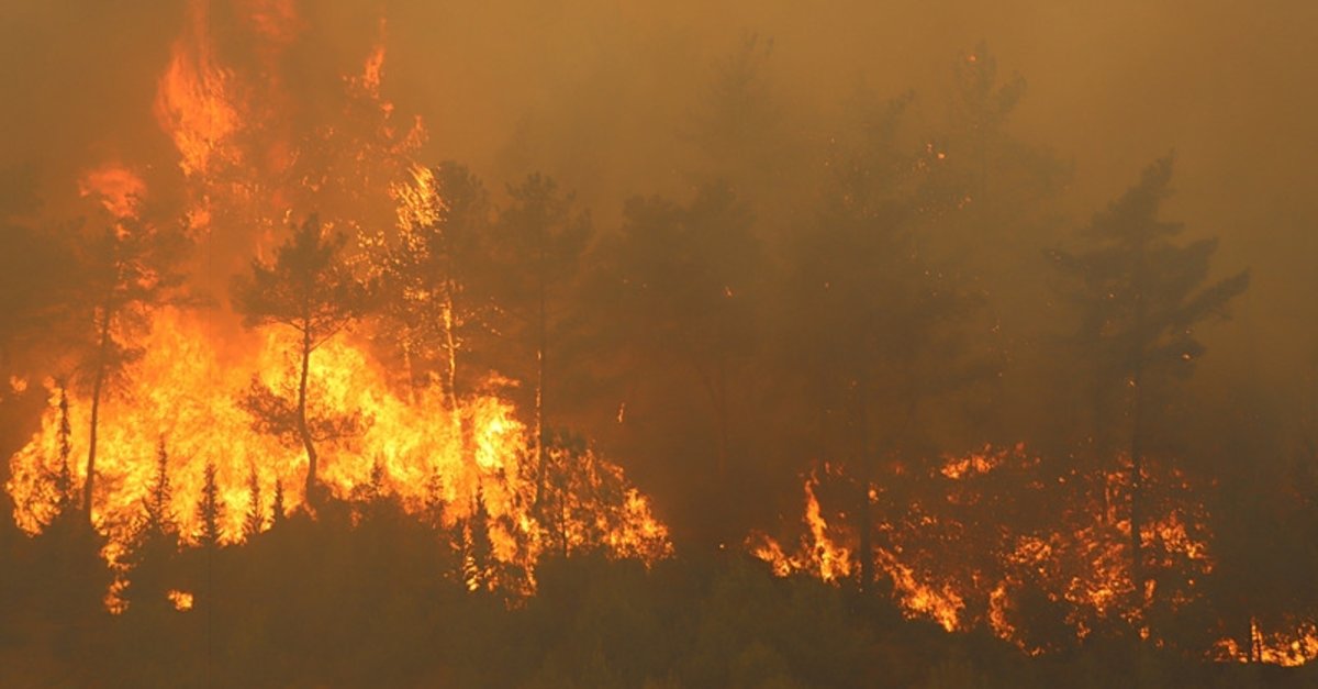 Jandarma ve polisin toplumsal olaylara müdahale araçlarının (TOMA) da destek verdiği söndürme çalışmaları sürüyor.