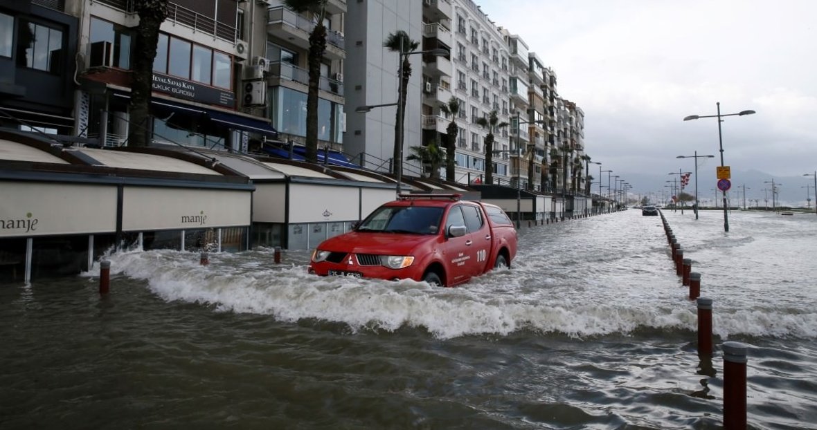 İZMİR'de bir gün önce etkili olan yağmur ve fırtına nedeniyle doğal afeti yaşayan ve karayla denizin birleştiği yer olan Kordon'da hayat normale dönmeye başladı. Belediye ekipleri de temizlik çalışmalarını sürdürüyor. İzmir'in simge noktalarından olan Kordon ve Alsancak Gündoğdu Meydanı'nda dün (perşembe) etkili yağmur ve fırtına nedeniyle denizin yükselmesiyle her yeri su bastı. Suların çekilmesinin ardından bugün ise hayat normale dönmeye başladı. Birçok işyeri ve caddenin sular altında kaldığı sahil boyunda, suların çekilmesiyle birlikte belediye ekipleri de yaraları sarmaya başladı. Yoğun bir şekilde temizlik çalışması yapan ekipler, kaldırımlardaki çamurları da temizledi. Dalgaların dört metreye ulaşarak yerinden söktüğü taşlar da ekiplerce yeniden yerlerine döşendi. Suların getirdiği malzemelerle tıkanan mazgallar da temizlenerek suların tahliyesi kolaylaştırıldı. Yağmur ve deniz sularıyla su basan işyerlerinin birçoğunun ise halen kapalı olduğu görüldü. Temizlik çalışmalarını tamamlayan işyerleri ise müşterilerine kapılarını açtı. Bazı vatandaşlar Kordon'daki yürüyüş pistinde yürüyüş yaparken, dün suların içinde kalan sokak hayvanları da normal hayatlarına geri döndü. Yağmur ve fırtına nedeniyle oluşan zararın ise yapılacak çalışma sonrasında netlik kazanacağı belirtildi.