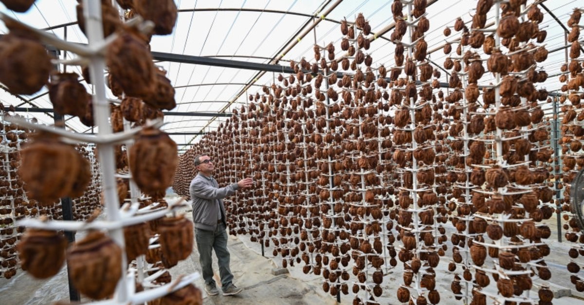 Hasat sezonuyla birlikte bahçeden toplanan meyveler kabukları dikey bir şekilde soyularak bu iş için geliştirilen özel seralarda tellere asılıyor. Cennet hurmaları yaklaşık 40 günde kuruyor. 5-7 kilogram yaş meyveden 1 kilogram kuru ürün elde ediliyor. Yaşken kilogramı 20 liradan satılan cennet hurmasının kurusu, kilogramı 200 ila 220 liradan alıcı buluyor.