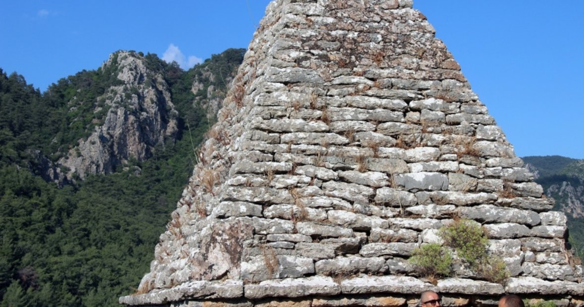 Turgut Mahallesi çıkışından dağın zirvesine doğru 10 dakikalık bir tırmanmanın ardından ulaşılan 2 bin 300 yıl öncesine ait piramit mezarın Türkiye'de ayakta kalan tek piramit mezar olma özelliği taşıdığı açıklandı. Yunanlı boksör Diagoras'a ait piramit mezar mimari tarzı ile dünyanın yedi harikasından birisi olan Mausoleum'a benzerliği ile dikkat çekiyor. 6 metre yüksekliğinde, 3 metre genişliğindeki piramit mezarın girişinde kitabesi yer alıyor.