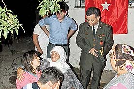 Eşinden 16 yıl önce ayrılan anne Sözer, iki oğlu Serkan ve Gürkan'a sarılıp gözyaşı döktü. Sinir krizi geçiren anne ve kardeşlere 112 Acil Servis ekipleri müdahalede bulundu. Türk bayrağı asılan şehit erin evi taziye ziyaretine gelen yakınları ile doldu.