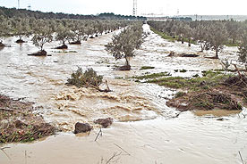 Su seviyesinin 6 metreye kadar yaklaştığı Büyük Menderes Nehri'nde meydana gelen taşkınlar, ekili alanları su içinde bırakırken, suyla kaplanan Özbaşı-Çalıköy, Koçarlı Yeniköy-Germencik karayolları ulaşıma kapandı. Söke Ovası'nda taşkın nedeniyle su altında kalan arazi alanı 80 bin dekara ulaştı.