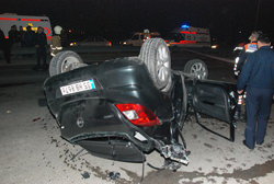 refüjdeki bariyerlere çarparak havalandı ve karşı şeritte seyreden Hasan Emrah