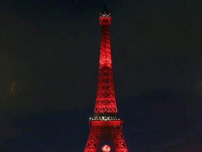 Twitter'da, bugün maçı olan takımların taraftarlarının desteğiyle yapılan yarışma sonucunda Türkiye'nin bayrağı Eyfel Kulesi'ne yansıtıldı. Türkiye, Lens kentinde Çek Cumhuriyeti ile oynadığı maçı 2-0'lık skorla galip tamamlamıştı.