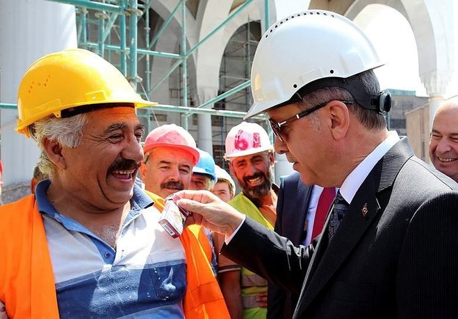 Cumhurbaşkanı Recep Tayyip Erdoğan, dün öğlen saatlerinde, Ankara'da yapımı devam eden Osmanlı Camisi inşaatında incelemelerde bulunarak yetkililerden bilgi aldı. Erdoğan daha sonra işçilerle bir süre sohbet etti, ardından hatıra fotoğrafı çektirdi. Erdoğan, bu sırada bir işçinin cebindeki sigara paketini alarak, kendisinden sigarayı bırakma sözü aldı. Cami inşaatından çıkışta vatandaşların büyük ilgisi ile karşılaşan Erdoğan, "Dik dur eğilme, bu millet seninle" diye slogan atan vatandaşları görünce aracından inerek kısa süre sohbet etti. Erdoğan yol boyunca kendisine sevgi gösterisinde bulunan halkı makam aracından selamladı. Cumhurbaşkanı Erdoğan, daha sonra Cumhurbaşkanlığı Külliyesi'ne geçerek TBMM Başkanı İsmail Kahraman ve Başkanlık Divanı üyelerini kabul etti. CHP'den TBMM Başkanvekili Akif Hamza Çelebi ve MHP'den TBMM İdare Amiri Erkan Haberal'ın da yer aldığı heyeti kabul yaklaşık 1 saat sürdü. Erdoğan, daha sonra haftalık olağan görüşme kapsamında MİT Müsteşarı Hakan Fidan'ı kabul etti.