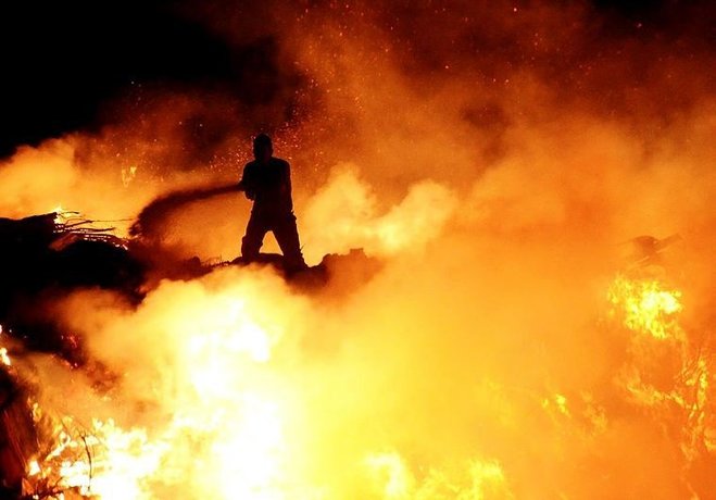 Muğla'nın Bodrum ilçesinde çöplük alanda çıkan ve güçlükle kontrol altına alınan yangını söndürme çalışmaları sürüyor.