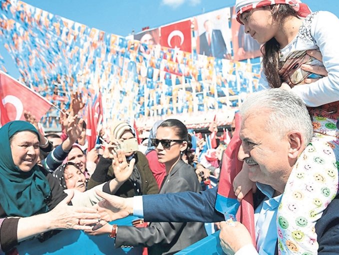 Başbakan Binali Yıldırım, anayasa değişikliğine ilişkin halk oylaması kapsamında Uşaklılarla buluştu. Uşak 15 Temmuz Şehitler Meydanı'nda düzenlenen mitinge katılan Başbakan Yıldırım, "Bu millet, büyük millet. Bu milletle hiç kimse bilek güreşi yapamaz. PKK'sı da FETÖ'sü de DEAŞ'ı da, alayı gelse bu millet hepsinin hakkından gelir" dedi. Türkiye'nin bulunduğu bölgede güçlü olması gerektiğini ifade eden Yıldırım, "Öyle bir değişiklik getirelim ki, her zaman tek başına hükümet çıksın, işi şansa bırakmayalım. Bugün AK Parti, ama yarın başkası da olabilir. Kim olursa olsun, mutlaka tek başına güçlü iktidar olsun. Çünkü bu bölgede güçlü olunmazsa, işimiz zor. Güçlü olmak mecburiyetindeyiz" diye konuştu.