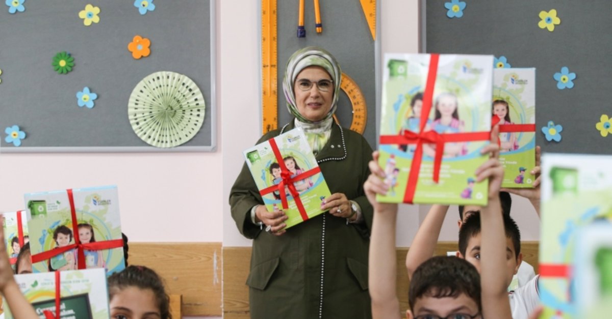 Başkan Recep Tayyip Erdoğan'ın eşi Emine Erdoğan, İstanbul Esenler'de geri dönüşüm tesislerinde atıktan elde edilen defterleri öğrencilere dağıttı. Hasip Dinçsoy İlkokulu'nda düzenlenen törenine katılan Erdoğan, belediyenin geri dönüşümle ilgili yaptığı çalışmaların sergilendiği okul bahçesini gezerek atıktan elde edilen ürünleri inceledi. Emine Erdoğan, geri dönüşüm kumbarası, atık yağdan elde edilen deterjan, atık pil değerlendirme kutusu ve Mavi Kapak Projesi'ne ilişkin Esenler Belediye Başkanı Tevfik Göksu'dan bilgi aldı. Atıktan elde edilen defterlerin öğrencilere ücretsiz dağıtıldığını öğrenen Erdoğan, Göksu'yu tebrik etti. Öğrencilerden sıfır atık projesine destek olmaları için evde anne ve babalarını çöpleri ayrıştırmaları konusunda uyarmalarını isteyen Erdoğan, geri dönüşüm tesislerinde atıktan elde edilen defterleri öğrencilere dağıtıp öğrencilerle toplu fotoğraf çektirdi. Proje kapsamında, atıktan elde edilen 500 bin defter, ilçedeki okullarda eğitim gören 90 bin öğrenciye ücretsiz dağıtılacak.