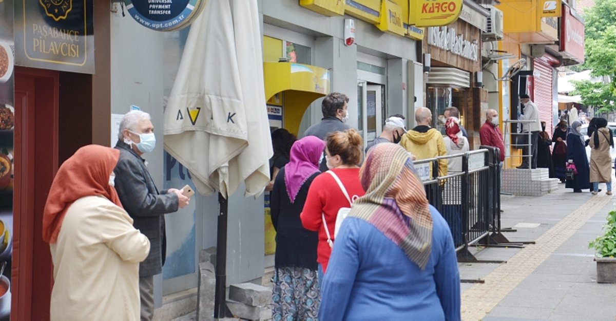 * Şube içine en fazla 3 müşteri alınıyor, aralarında mesafe bırakmaları için sözlü ve şubelerdeki bilgilendirme afişleriyle yazılı bilgi veriliyor. Önerilen mesafenin bırakılması için zemin uyarı bantları yerleştirildi.