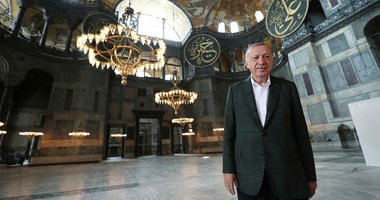 Son dakika: Başkan Recep Tayyip Erdoğan Ayasofya Camii'nde incelemelerde bulundu