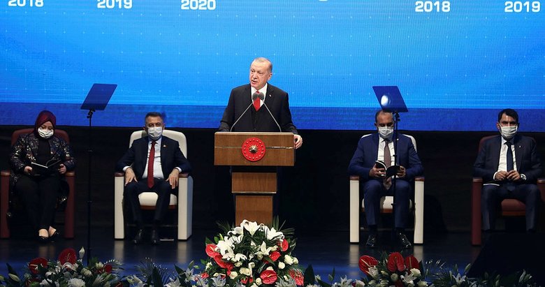 Başkan Recep Tayyip Erdoğan, Beştepe Millet Kongre ve Kültür Merkezi'nde düzenlenen Cumhurbaşkanlığı Hükümet Kabinesi 2 Yıllık Değerlendirme Toplantısı'nda katılımcılara hitap etti. Türk milleti ve Türkiye Cumhuriyeti'nin son 7 yılda tarihi bir dönemden geçtiğini söyleyen Erdoğan, 2 saati aşkın sürede şunları söyledi: