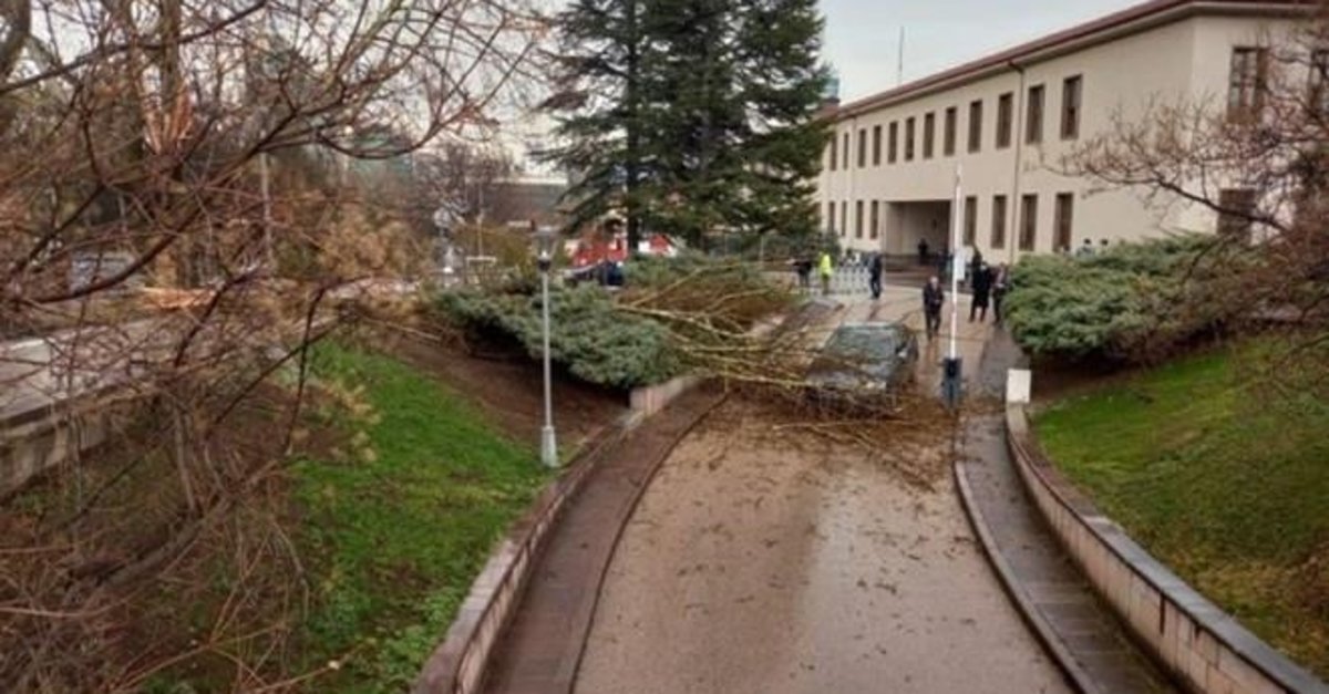 TBMM yerleşkesindeki bir ağaca yıldırım düşmesi sonucu kısa süreli panik yaşandı. Ağacın kopan parçası seyir halindeki bir aracın üzerine düştü.