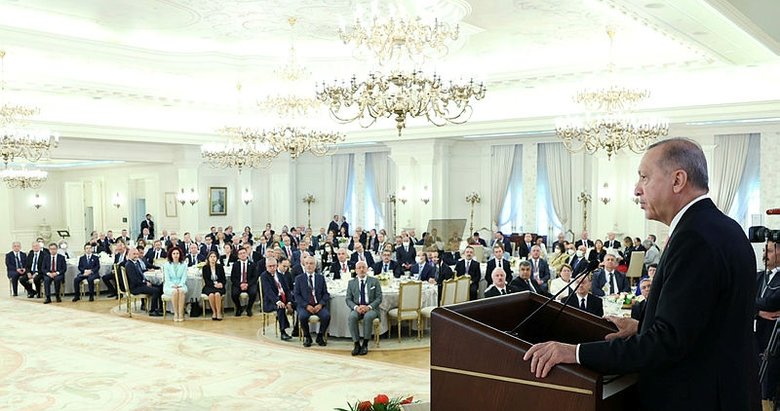 Türkiye'nin bölgesindeki çalışmalarına değinen Başkan Erdoğan, "Karadeniz'de yaptığımız doğal gaz keşfi ısrarlı çabalarımızın ilk sonucu oldu. Abdülhamid Han 4. sondaj gemimizi Mersin Taşucu limanından uğurlayacağız. Bugüne kadar yetki alanlarımızda bize rağmen herhangi bir işlem yapılmasına izin vermedik, bundan sonra da vermeyeceğiz. Terör tehditlerini ortadan kaldırmaya kararlı olduğumuzu tüm dünya biliyoruz. Operasyonlarla bölücü terör örgütünün belini kırdık. Bölgemizin geleceğinde teröre yer olmadığını tüm dünyaya gösterdik. Katil sürülerini bölgemizden tamamen söküp atana kadar durmayacak, terörle mücadelemizi sürdüreceğiz. Suriye'de terör örgütünün yuvalandığı son bölgeleri de temizleyerek güvenli bölgenin halkalarını birleştireceğiz" ifadelerini kullandı.
