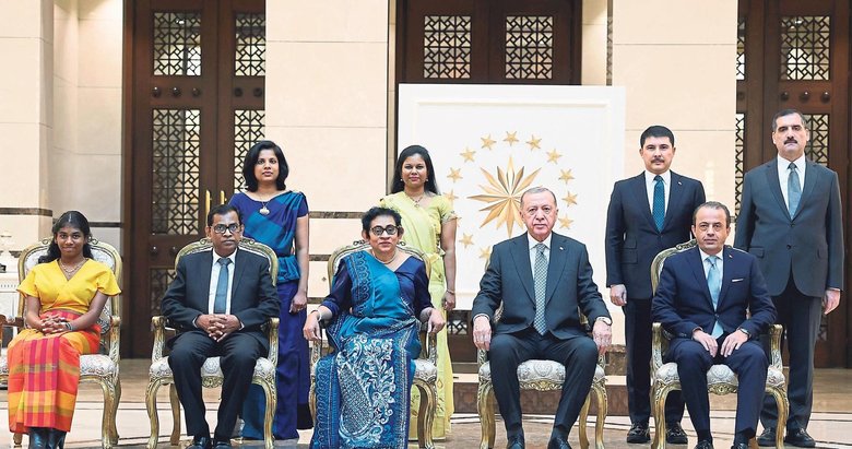 BAŞKAN Recep Tayyip Erdoğan, Sri Lanka ve Uruguay büyükelçilerinin güven mektuplarını kabul etti. Başkan Erdoğan, Cumhurbaşkanlığı Külliyesi'nde Sri Lanka Büyükelçisi Saranya Hasanthi Urugodawatte Dissanayake ve Uruguay Büyükelçisi Hugo Cayrus, İsrail Büyükelçisi Irit Lillian ve Kırgızistan Büyükelçisi Ruslan Kazakbaev'i ayrı ayrı kabul etti. Büyükelçiler, Başkan Recep Tayyip Erdoğan'a güven mektuplarını sundu. Büyükelçiler ve beraberindekiler, daha sonra Erdoğan ile hatıra fotoğrafı çektirdi.