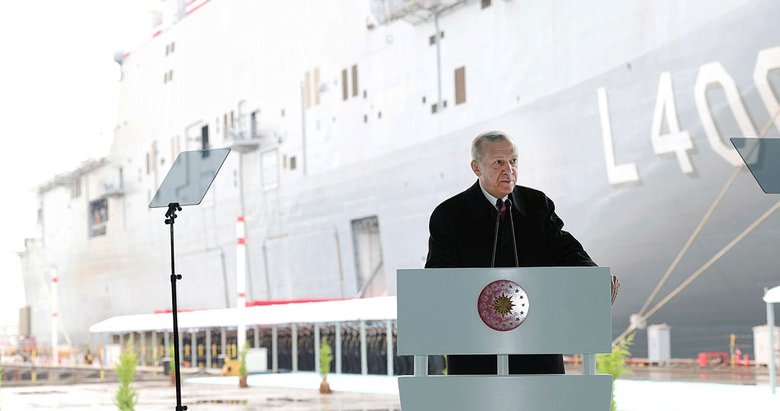 Başkan Erdoğan, "Şu anda milletime buradan ayrıca bir haberi de duyurmak istiyorum. TCG Anadolu'yu buradan Sirkeci'ye çekeceğiz ve Sirkeci'de TCG Anadolu Gemimizi halkımıza açacağız. İstiyoruz ki halkımız gelsin, TCG Anadolu Gemimizi gezsin, dolaşsın, sadece biz gururlanmayalım. Milletçe de TCG Anadolu'yla da gururlanma imkanını halkımıza verelim" dedi.