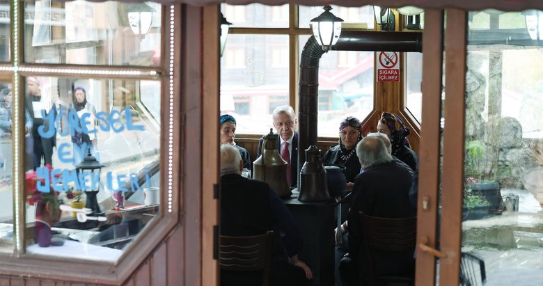 Erdoğan, Ayder'den ayrılırken kendisine sevgi gösterisinde bulunan vatandaşlarla fotoğraf çektirdi.