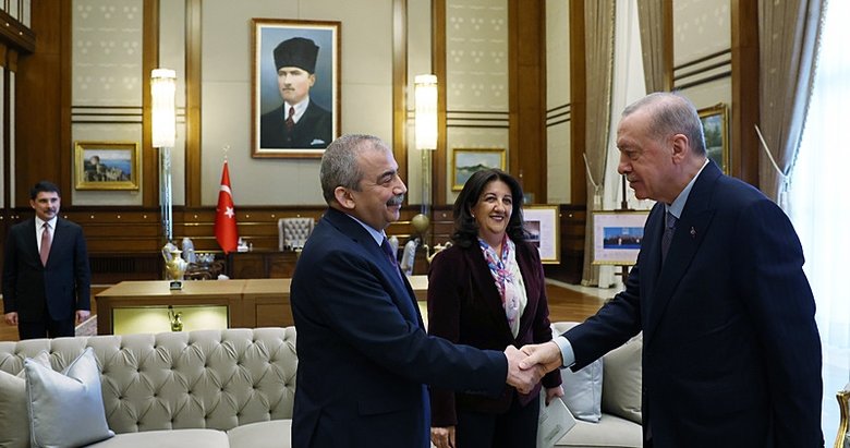 Başkan Recep Tayyip Erdoğan, dün DEM Parti Milletvekilleri Pervin Buldan ile Sırrı Süreyya Önder'i Cumhurbaşkanlığı Külliyesi'nde kabul etti. Olumlu havada geçtiği öğrenilen görüşme saat 13.30'da başladı ve 15.00'de sona erdi. Basına kapalı gerçekleştirilen görüşmede, AK Parti Genel Başkanvekili Efkan Ala ile MİT Başkanı İbrahim Kalın da yer aldı.