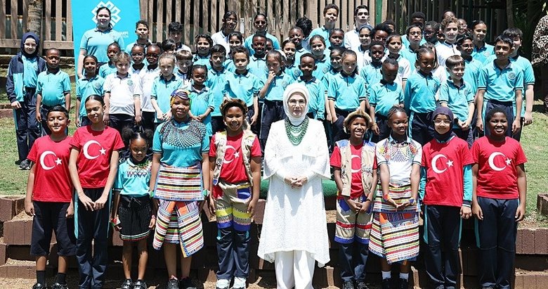 BAŞKAN Recep Tayyip Erdoğan'ın eşi Emine Erdoğan, Güney Afrika'da Uluslararası Maarif Okulu'na ziyarette bulundu. Türkiye Maarif Vakfı'nın Uluslararası Maarif Okulu'nu ziyaret eden Emine Erdoğan, okula gelişinde Maarif Vakfı Güney Afrika Ülke Temsilcisi Abdullah Cevizci ve öğretmenler tarafından karşılandı. Karşılamada iki öğrenci Emine Erdoğan'a çiçek takdim etti. 'Geri Dönüşüm ve Çevre' temalı sergiyi gezen Emine Erdoğan, buradaki çalışmalar hakkında öğrenci ve öğretmenlerden bilgi aldı. Öğrencilerin perküsyon, koro ve şiir performanslarını dinleyen Emine Erdoğan, dans ekibinin gösterisini de ilgiyle izledi. Emine Erdoğan, ziyaretine ilişkin yaptığı paylaşımda, "Ülkemizin uluslararası eğitimde dünyaya açılan penceresi olan Maarif Okullarımızın, bu zengin coğrafyada toplumlar arası köprüleri güçlendirmeye devam etmesini diliyorum. Tüm çocuklarımıza ilimle ve güvenle yürüdükleri başarı dolu bir gelecek diliyorum" dedi.