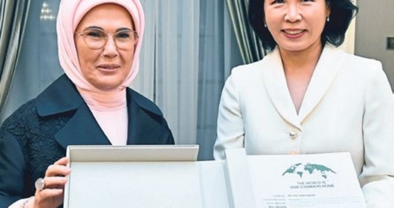 BAŞKAN Recep Tayyip Erdoğan'ın eşi Emine Erdoğan, Türkiye'ye resmi ziyaret gerçekleştiren Güney Kore Devlet Başkanı Lee Jae Myung'ın eşi Kim Hea Kyung ile programlarına ilişkin video paylaştı. Emine Erdoğan, yaptığı paylaşımda, "Bu anlamlı ziyaretin, iki ülke için de olumlu ve kalıcı adımlara vesile olmasını temenni ediyorum" ifadelerini kullandı. Paylaşımdaki videoda, lider eşlerinin Cumhurbaşkanlığı Millet Kütüphanesi ile "Anadoludakiler: Sof'un Zamansız Yolculu Yolculuğu" ve "Arkeolojinin Altın Çağı" sergilerini ziyaretleri, Kim'in "Küresel Sıfır Atık İyi Niyet Beyanı"nı imzalaması ve Başkan Recep Tayyip Erdoğan'ın Güney Kore Devlet Başkanı Lee Jae Myung onuruna verdiği yemekten görüntüler yer aldı.
