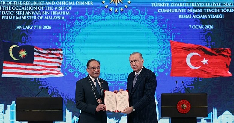 Başkan Recep Tayyip Erdoğan, Cumhurbaşkanlığı Külliyesi'nde düzenlenen törende, Malezya Başbakanı Enver İbrahim'e Cumhuriyet Nişanı tevcih etti.