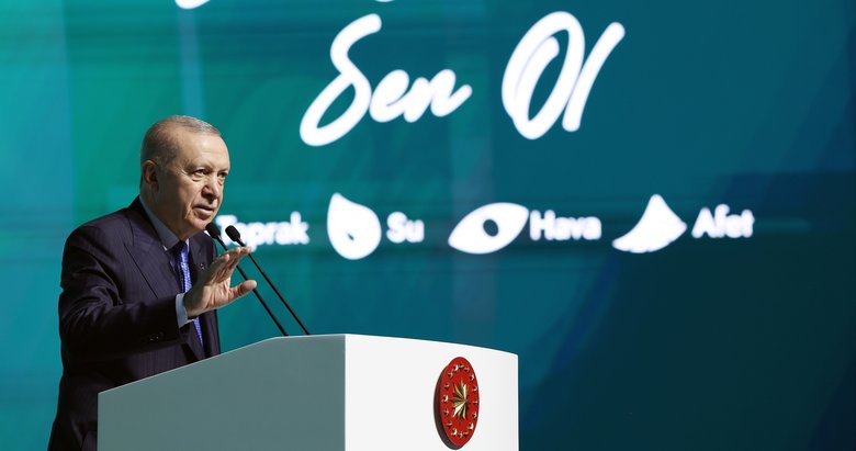 Bugün tüm dünyanın çevre ve iklim meselesinde ciddi sınamaların eşiğinde bulunduğunu söyleyen Erdoğan, "Sanayi atıkları, spreyler, dumanlar, petrol ve ilaç atıkları, plastik ürünler, suni gübreler, çöpler, kimyasal atıklar çevremizi çok hızlı biçimde kirletiyor. Hava, su ve toprak artık iyice ürkütücü boyutlara ulaşan bu hızlı kirlenmeden payını alıyor. Çevre kirliliği, iklim krizi ve tabiatın bozulan dengesi sebebiyle yaşanan seller, fırtınalar, ani hava olayları; insanların yanı sıra tüm canlıları olumsuz etkiliyor. Tabiatı tahrip etmenin kınandığı, israfın şiddetle yasaklandığı, temizliğin övüldüğü bir kültürden geliyoruz" ifadelerini kullandı.
