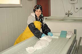 Önceleri zorlandım. Ama korkmadım. Korkulacak bir şey yok. Sevap için yapıyoruz bu işi. Hocamız Mesut Yavaşoğlu'nun yardımıyla bir cenaze yıkaması için neler varsa uygulamalı olarak gördük. Aslında musalla taşında bu işi yapmak çok farklı bir duygu, Allah katına çıkacakları siz hazırlıyorsunuz.