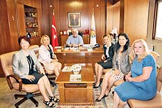 Beldede bulunan 5 bankanın şubesiyle PTT şubesini yöneten kadın müdürler ilk kez Belediye Başkanı Cahit İnceoğlu'nun makamında bir araya geldi