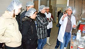 Bugüne kadar yurtiçi ve yurtdışından bir çok heyeti ağırlayan Tire Süt Kooperatifi'ni bu kez üniversiteli öğrenciler gezdi. Kooperatifin, Tire Organize Sanayi Bölgesi'nde (TOSBİ) toplam 5 bin metrekare alanda kurulu bulunan 'süt ve süt ürünleri işleme tesisini' inceleyen Ege Üniversitesi Tire Kutsan Meslek Yüksekokulu Gıda Teknolojisi 2. sınıf öğrencileri, yetkililerden uygulamalı eğitim aldı. İlk olarak mikrobiyoloji laboratuvarını inceleyen toplam 14 kişilik öğrenci grubu, ardından işletmenin pastörize süt, beyaz ve tulum peynir, kaşar ve lor ünitesi ile dolum ve paketleme bölümünü gezdi.