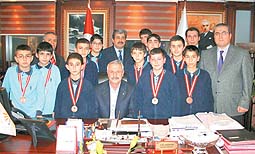 Karabağlar Özel Yamanlar İlköğretim Okulu Matematik Olimpiyat Takımı öğrencileri, Karabağlar Belediye Başkanı Sıtkı Kürüm'ü makamında ziyaret etti. İlçeye kazandırdıkları madalyalardan dolayı memnuniyetini dile getiren Başkan Kürüm, "Zekasını, çalışmayla birleştiren nesillere ihtiyacımız var. Bilimsel, sportif veya sanatsal herhangi bir etkinlikte inançlı, azimli ve bilinçli bireyler yetiştirmek istiyoruz. Elde etmiş olduğunuz başarılar sizin bu özelliklere sahip olduğunuzun göstergesidir. Bundan dolayı sizi ve emeği geçenleri kutluyorum" dedi. Okul ve olimpiyat çalışmaları hakkında bilgi veren Özel Yamanlar İlköğretim Okulu Müdürü Murat Çelen, Başkan Kürüm'e desteklerinden dolayı teşekkür etti.