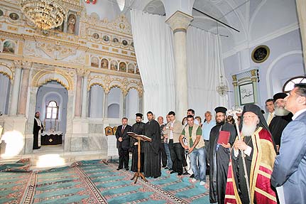 Alaçatı Pazaryeri Camii müezzini Yaşar Arslan'ın karşıladığı Yunan din adamları, gördükleri hoşgörü için yetkililere teşekkür etti.