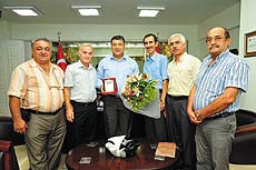 İzmir Kamu Ulaşımı Emeklileri Kültür ve Dayanışma Derneği (İZKUDER)üyeleri, katkıları nedeniyle Bornova Belediye Başkanı Kamil Okyay Sındır'a teşekkür plaketi verdi. İZKUDER yönetim kurulu üyeleri, Bornova Belediye Başkanı Prof. Dr. Kamil Okyay Sındır'a teşekkür ziyaretinde bulundu. Derneğin kuruluşunda ve çalışmalarında yaptığı katkılar nedeniyle Başkan Sındır'a teşekkür plaketi veren Dernek Başkanı Tayfun Subaşı, "Başkanımız, adaylığı sürecinde derneğimizi ziyaret ettiği gibi seçildikten sonra da sorunlarımızla ilgilenmeye devam etti. Karşılıklı ziyaretlerde bulunduk. Bu da bizi ve üyelerimizi çok mutlu etti" diye konuştu.