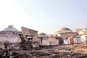Tarihi Havra Sokağı'nın Anafartalar Caddesi'ne çıkış noktasında yer alan ancak bakımsızlıktan dolayı yıkılan 3 asırlık Küçük Karaosmanoğlu Hanı, kervansaray olarak aslına benzer şekilde yeniden inşa ediliyor.