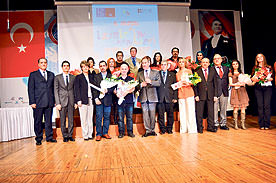İzmir Üniversitesi, İzmir Suluboya Ressamları Derneği ve Türk Psikolojik Danışma ve Rehberlik Derneği İzmir Şubesi ortaklığında düzenlenen 4. İzmir'in Renkleri Resim Yarışması'nda dereceye girenler ödüllerini törenle aldı. 11 şehirden 154 ressamın eseri 'Suluboya, Likit Suluboya, Lavi' ile 'Yağlıboya, Akrilik' olmak üzere iki kategoride değerlendirildi. Her sanatçının en fazla 3 eserle katılabildiği yarışmada dereceye girenlere plaket verildi. Birinci olan Cemal Selimgil ve Hayat Hepdarcana plaketlerini Günay verdi. İkinci olan Neşe Havutçuoğlu ve Murat Güney, plaketlerini Emniyet Müdürü Ali Bilkay'ın elinden aldı. Tuğba Türkgüngün ve Mustafa Fırat'a üçüncülük plaketleri İzmir Üniversitesi Mütevelli Heyeti Başkanı Ali Rıza Doğanata tarafından verildi. Yarışmada yer alan 152 eser 9 Mayıs tarihine kadar İzmir Özel Fatih Koleji kampüsü İzmir Üniversitesi Sanat Galerisi'nde sergilenecek.