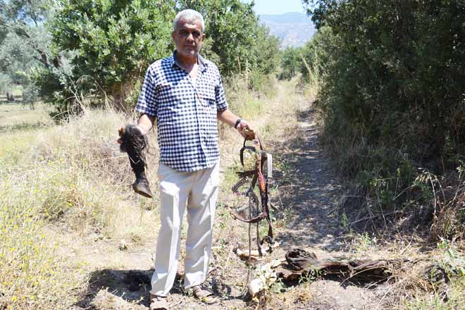 Kuyucak Beşeylül Mahallesi Kırbahçeleri mevkiinde zeytin bahçesi bulunan çiftçiler, son bir aydır bahçelerinde kesilmiş at uzuvlarıyla karşılaşıyor. çiftçilerden Mehmet Özkul, önceki gün bahçesinde çalılarla örtülmüş halde üç ayrı ata ait kesilmiş kafa, ayak ve farklı uzuvlar buldu. Konuyu jandarma ve belediye yetkililerine ilettiklerini, fakat kimsenin konuyla ilgilenmediğini ileri süren Özkul, kimliği belirsiz şahıslar tarafından tarlalarında kesilen atların etlerinin piyasa sürülmesinden şüphelendiklerini dile getirdi. Bahçedeki ağaçlarda kan izleri ve at derileri olmasının şüphelerini güçlendirdiğini belirten Özkul, halkın sağlığıyla oynanmasından endişe duyduklarını söyledi.