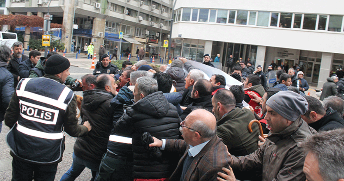 Büyükşehir Belediyesi'nin yan tarafındaki personel girişi kapısı önünde toplanan sendika temsilcileri ve işçiler yaşananlara tepki göstermek ve basın açıklaması yapmak için Büyükşehir Belediyesi Başkanlık Binası önünde açıklama yapmak istedi. Kocaoğlu gösterinin izinsiz olduğunu belirterek polisten yardım istedi. İzmir Emniyeti Çevik Kuvvet ekipleri de işçilerin belediye binasının önündeki eylemine karşı çıktı. İşçilerin direnmesi üzerine polis kalabalığa biber gazı sıktı. 8 kişi gözaltına alınırken, bazı işçiler biber gazından kaçarak Büyükşehir Belediyesi binasına sığındı. DİSK Genel-İş Sendikası 2 No'lu Şube Başkanı Arif Yıldız'ın da gömleği yırtıldı.