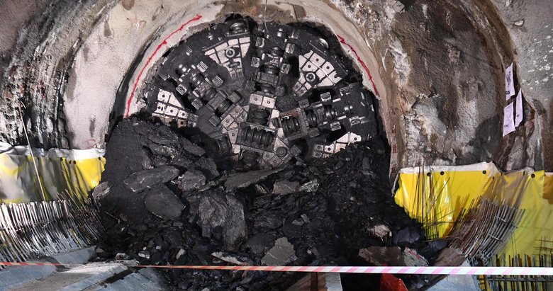 "Dev köstebek" diye de adlandırılan TBM'nin iki istasyonu birleştiren tüneldeki son çalışması metro inşaatında çalışanlar tarafından sevinçle karşılandı.