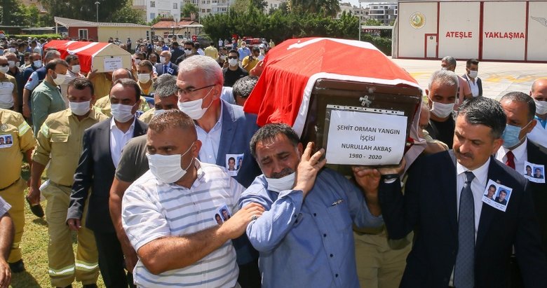 Tarım ve Orman Bakanı Bekir Pakdemirli'nin katılımıyla İzmir Orman Bölge Müdürlüğünde düzenlenen törende, Nurullah Akbaş (40) ve Ali Yılmaz'ın (47) Türk bayrağına sarılı tabutları, alana getirildi.
