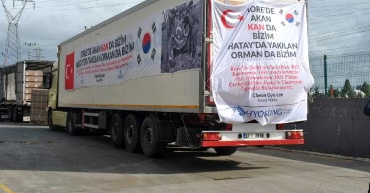 Çerkezköy Organize Sanayi Bölgesi'nde kurulu bulunan Güney Kore menşeli Hyosung İstanbul Tekstil firması, Hatay'da meydana gelen orman yangınlarının ardından yaraların sarılmasına katkıda bulunarak, 300 hektarlık alanı yeniden yeşillendirmek için başlatılan çalışmalara destek olmuştu. Firma, Güney Kore'de şehit ve gazi olan 3 bin 43 kahraman Türk askerinin anısına Çerkezköy'den Hatay'a 3 bin 43 zeytin fidanı gönderdi. Hatay'a gönderilen Türk ve Kore bayraklı TIR'ın üzerindeki, "Kore'de akan kan da bizim. Hatay'da yakılan orman da bizim. Kore'de şehit ve gazi olan 3 bin 43 kahraman Türk askerlerimizin aziz hatıralarına 3 bin 43 fidanı Hatay'da toprakla buluşturuyoruz" pankartı büyük alkış almıştı. Hyosung İstanbul Tekstil Genel Müdürü Cheon Gyu Lee, Türkiye'ye yatırım yapan Koreli bir işadamı olarak Hatay'da meydana gelen yangın ve sabotaj olaylarından büyük üzüntü duyduğunu ifade ederek gönülleri fethetmişti.