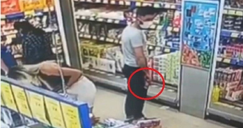 Öte yandan aynı kişi, dün de aynı zincir markette bir başka kadının peşinde dolanırken güvenlik kameralarına yakalandı. Kamera görüntülerinde şüphelinin yine alışveriş yaptığı esnada bir kadının peşinde dolanması, elinde telefon bulunması, şüphe çektiği için telaşlanarak marketten çıktığı anlar yer aldı.
