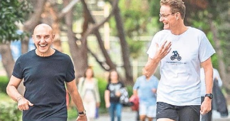 İZMİR Büyükşehir Belediye Başkanı Tunç Soyer, belediye başkanlığı yaptığı kentin sorunlarını unutup ABD ve İngiliz büyükelçilerle yemeklere giden İstanbul Büyükşehir Belediye Başkanı Ekrem İmamoğlu'na özendi. Tunç Soyer, kente gelen Avrupa Birliği Türkiye Delegasyonu Başkanı Büyükelçi Nikolaus Meyer-Landrut ile Avrupa Hareketlilik Haftası'nın son günü olan Otomobilsiz Kent Günü'nde Kültürpark'ta sabah yürüyüşüne çıktı. Kültürpark Lozan kapısından başlayan ve yaklaşık 1 saat süren yürüyüşte Tunç Soyer konuğuna Kültürpark hakkında bilgi verdi