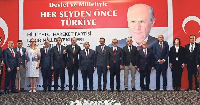 Şahin, "Bu vazife 100 yıl önce seninleydi bugün yine öyle. Bayrağına, toprağına, vatanına sahip çıkma vazifesi yine sana verildi. Sen diyorum, sen, ben, hepimiz. Unutulmamalı ki Türkiye hem Türk dünyasının hem İslam aleminin Balkanlar'dan Afrika'ya gönül coğrafyasının umut ışığıdır. Bu ışığın sönmesi Türk coğrafyasının karanlığa gömülmesi demektir. Güç olma yolunda mesafe kat etmiş Türk Milleti, bu yürüyüşün sekteye uğramaması için milletimizin CHP, PKK, FETÖ ve Pagosçular'ın eline bırakılmaması gerekmektedir. Önümüzde 30 gün var, bu 30 günde emeğini, alın terini, çalışmasını esirgeyen herkes vebal atındadır. Her gönüldaşımız kalan 30 günde vazifesini yapmayan her bir ülküdaşımız, vebal altında kalacaktır bilesiniz" diye konuştu. İl Başkanı Şahin'in konuşmasının ardından adaylar Hasan Kalyoncu, B. Bumin Özarslan, Cihan Aslan, Selahattin Şahin, Ufuk Aksoy, Sıdıka Topal, Salim Arduçlu, Lokman Kızılörenli, Nihal Baş, Ali Durut, A. Batuhan Gürbüz, Hülya Aykaç, Halit Göndüz, Kayhan Derya yanı sıra MHP İzmir 2. Bölge milletvekili adayları sırasıyla, Tamer Osmanağaoğlu, Abdulkadir Bektaş, İsmail Obuz, Ayşegül Ekşi, Recep Akan, E. Erim Ergören, Çetin Altın, İ. Gürkan Taşkın, A. Deha İmal, Y. Fikri Atalı, Hasan Sekin, Erhan Elibol, Mustafa Çintaş ve M. Mert Dolğaç sahneye çağrılarak kamuoyuna tanıtıldı.