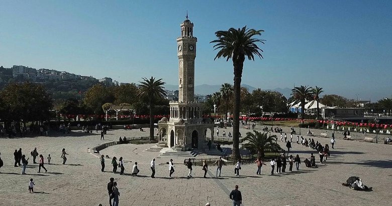 Cumhuriyetin 100. Yılı kutlamaları çerçevesinde İzmir İl Milli Eğitim Müdürlüğü tarafından gerçekleştirilen etkinlikte İzmirli vatandaşlar Konak Meydanı'nda bir araya geldi ve karşılıklı zeybek oynadı.