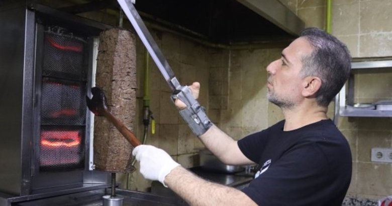 İZMİR'DE, sağ elini makineye kaptıran döner ustası Fesih Gündem (45), 25 yıldır severek yaptığı mesleğini sürdürebilmek için özel aparat geliştirdi.