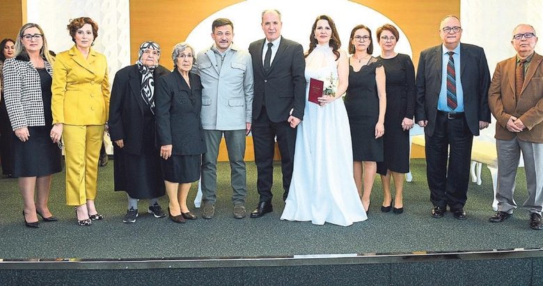Kendisi de 3 Temmuz 2005'te Karşıyaka Nikah Dairesi'nde dünya evine girdiğini dile getiren Hamza Dağ, "Bu salon benim için önemlidir, hassastır, çok özeldir. İnsanın ömründe herhalde 5-6 defa özel anı vardır. Burası da onlardan biri benim için. Umarım bu salonun sizin hayatınızda da önemli bir yeri olacaktır bundan sonra. Allah bir yastıkta kocatsın, mutluluğunuzu daim etsin" dedikten hanıma teslim etti.