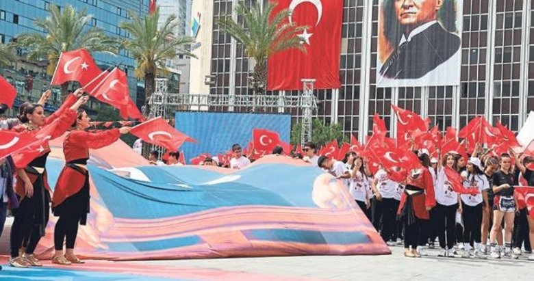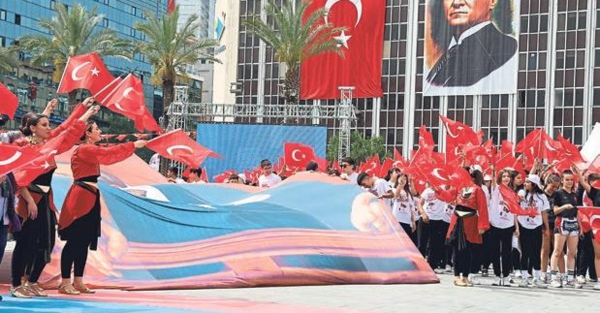 İzmir'de 19 Mayıs Atatürk'ü Anma, Gençlik ve Spor Bayramı'nın 105. yıl dönümü çeşitli etkinliklerle kutlanırken, İzmirliler kutlamalara ellerinde Türk bayraklarıyla katıldı. Törene İzmir Valisi Süleyman Elban, Gençlik ve Spor İl Müdürü Murat Eskici, Ege Ordusu ve Garnizon Komutanı Orgeneral Kemal Yeni, siyasi partilerin ve sivil toplum kuruluşlarının temsilcileri, öğrenci ve öğretmenler ile vatandaşlar katıldı. Bando eşliğinde saygı duruşunda bulunulması ve İstiklal Marşı'nın okunmasının ardından Türk bayrağı göndere çekildi. Akrobatik bisiklet ve paten gösterisinin ardından öğrenciler dev Türk bayrağı ile Atatürk posteri açtı. Program, konfeti gösterisinin ardından sona erdi.