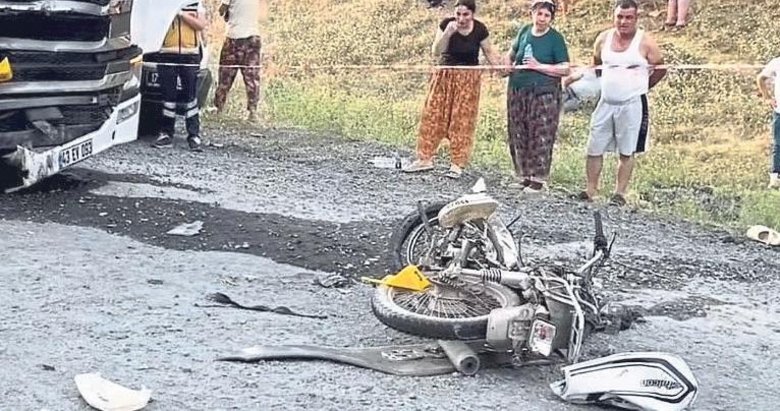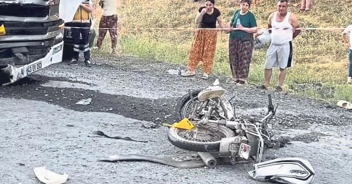 Tahir K. yönetimindeki 43 EV 093 plakalı TIR, plakası ve sürücüsü öğrenilemeyen motosikletle çarpıştı. Olay yerine gelen sağlık ekiplerinin yaptığı kontrolde, motosiklet sürücüsü Hasan Eker (21) ve yolcu Hasan Emir Tabaklıoğlu'nun (18) olay yarinde hayatını kaybettiği belirlendi. TIR sürücüsü Tahik K. gözaltına alındı.